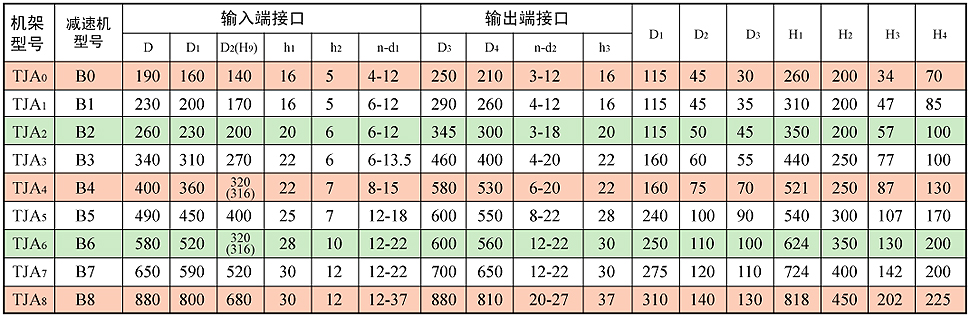 附:TJA型減速機(jī)機(jī)架外形及安裝尺寸圖